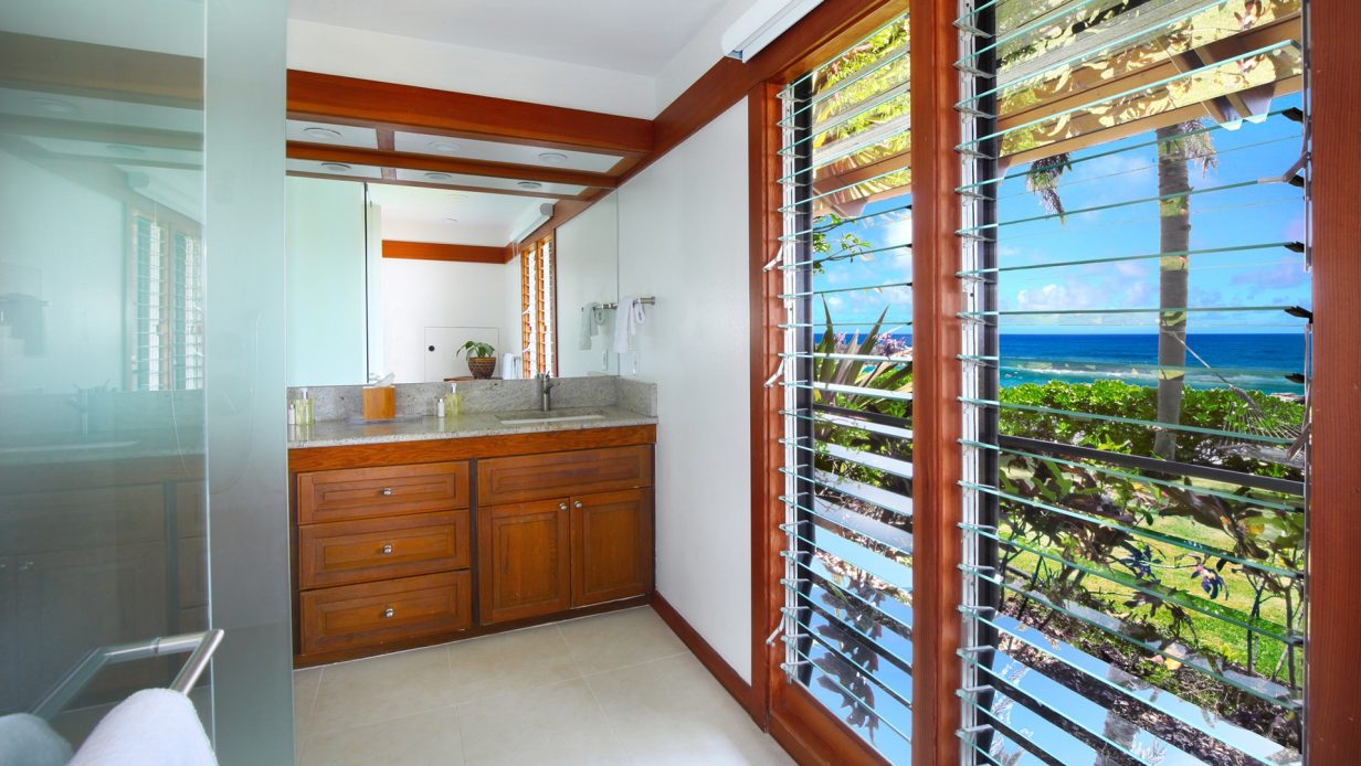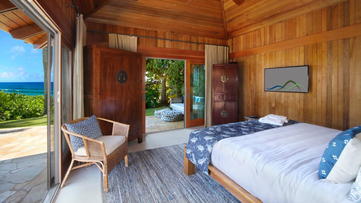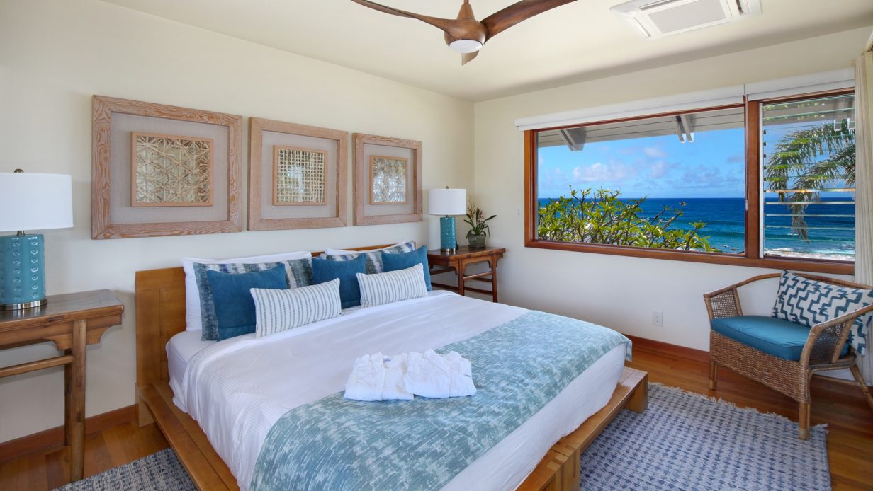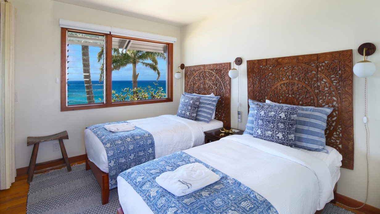 • Main House – 3 Bedrooms, 2.5 Baths, upper level bedrooms share an oceanfront lanai