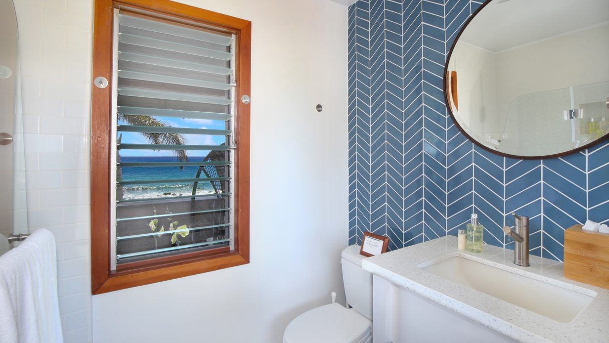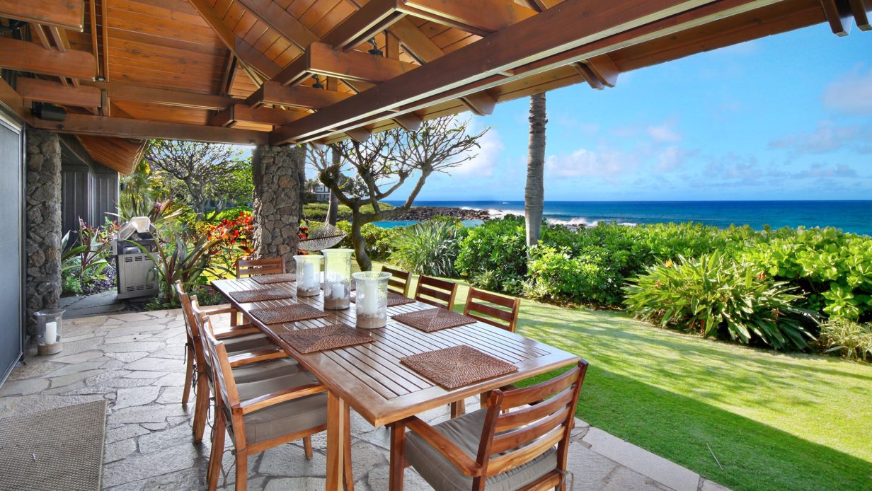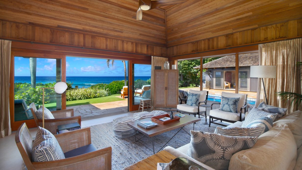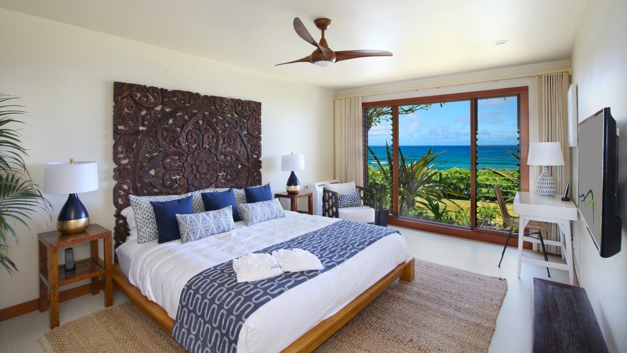 • Main House – 3 Bedrooms, 2.5 Baths, upper level bedrooms share an oceanfront lanai