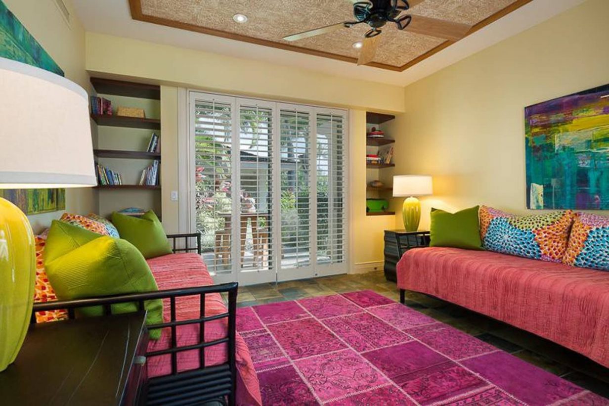 Upstairs, enjoy magnificent Big Island sunsets from another terrace – just off the ‘Great’ Room. The kitchen is fully stocked and includes a back barbecue deck and pantry. Enjoy two golf carts that provide easy access to all resort amenities – from the Four Seasons Hotel to the Hualalai Sports Club and Spa, and from the Hualalai Golf Club to the ‘Trading Company’. And, in addition to the 5 swimming pools at the Four Seasons, the Waiulu Community pool sits just opposite the villa – convenient for a late afternoon swim.