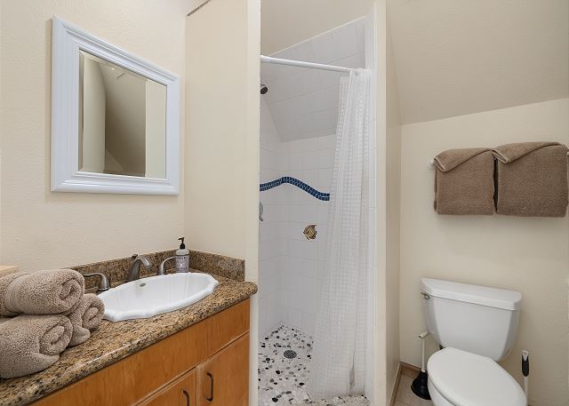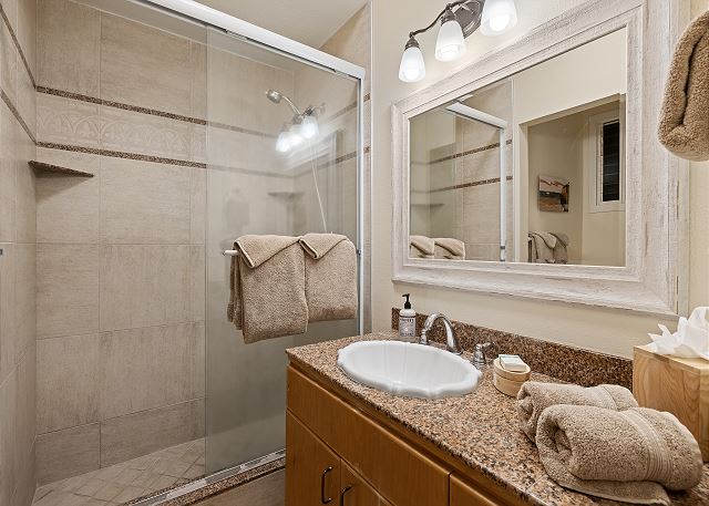 Bedroom 1 Master – King Bed, en suite bathroom, shower