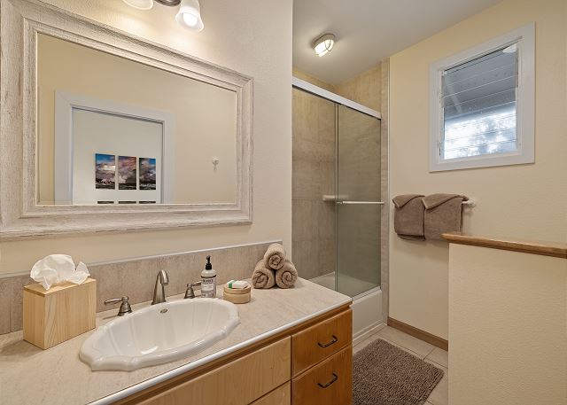 Bedroom 2 – Queen Bed, en suite bathroom, tub