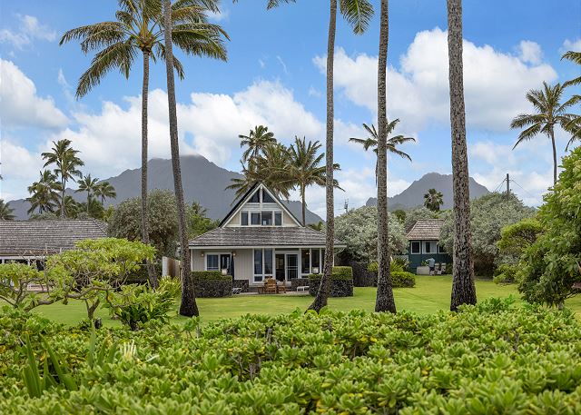 Island living at its finest, this casual Kailua beachfront home is located on the Windward side of Oahu, 30 minutes from Honolulu and approximately 1 mile from the center of Kailua Town. Enjoy spectacular sunrises over Kailua Bay, the scenic Ko’olau Mountain Range and outlying islands right from the front lanai. The home enjoys cool breezes that come off the ocean, a large open floor plan, spacious guest rooms and an expansive ocean front, manicured lawn with swaying palm trees and the ocean beyond. Guests can enjoy swimming, body surfing, paddling and fishing right from the backyard! The kitchen is fully equipped with everything needed for a family feast, or Kailua Town is just a 5 minute drive with its’ myriad of restaurants to choose from.
