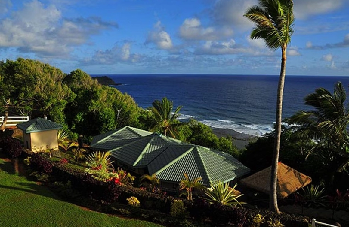 Kauai Serenity is the Hawaii paradigm of breath taking surroundings and luxury accommodation. Enter this gated estate and enjoy three acres of oceanfront bliss. Private and elegant, Kauai serenity rests perfectly on a bluff in Kilauea. A property path leads you to a secluded beach below. Every room in the house boasts an oceanview. And with four Master suites, large and sophisticated parties can relax in the comfortable and classic Kauai Serenity Kilauea Hawaii vacation rental.