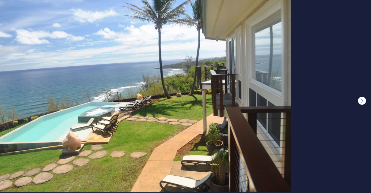Amenities of this Kilauea Hawaii vacation rental include satellite cable, DVD collection, Apple computer, high-speed internet, fax office space, and a great room surround system. Special features of the home include an interior Koi pond, two living rooms, one with Chicory Baby Grand Piano, a lovely oceanfront dining room for 8, a separate breakfast room for 4, outdoor dining and magnificent executive chef kitchen with bar area, butler’s pantry and every kitchen amenity necessary. Just in front of the property on the ocean side, is a separate spa building. Here guests enjoy the exercise room and massage room. All specialty services like a massage or manicure can be arranged to take place here–the perfect oceanfront pampering locale! LICENSE#: TVNC#4201
