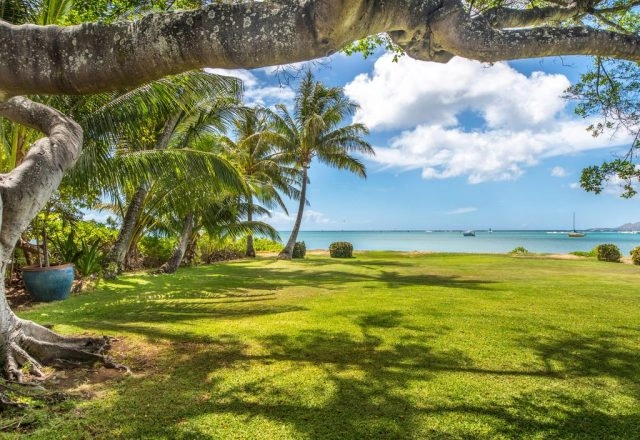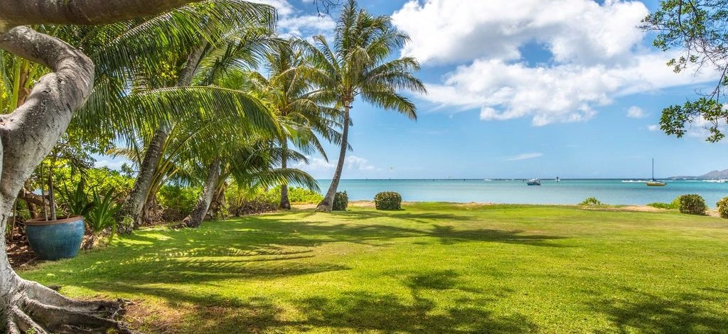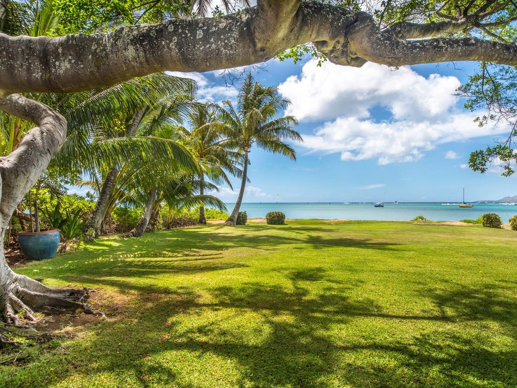 Pacific Charm rests on one acre of land with direct access to a sandy beach. The interior is a spacious 3,900 square feet with old Hawaiian-style charm. Originally built in the 1930’s and completed in 1941 with restorations and renovations over the years, Pacific Charm is the ultimate combination of old Hawaiian charm with modern conveniences. Pacific Charm features Ohia, Hawaiian Mahogany, Koa and Hawaiian Eucalyptus floors and a coffered wood plantation ceiling in the living room and dining areas. The open floor plan draws you to the lanai with its astonishing views of Moanalua Bay, Diamond Head, and Koko Head craters. The outdoor surroundings entertain any traveler whether on the lanai getting ready for a BBQ, swimming in the gentle waves just steps away or engaging in a nap under the shady Banyan tree. Pacific Charm features air conditioning, although rarely needed with trade winds breezing through the huge Hawaiian windows. Wireless Internet access is available for those who like to work while they play.