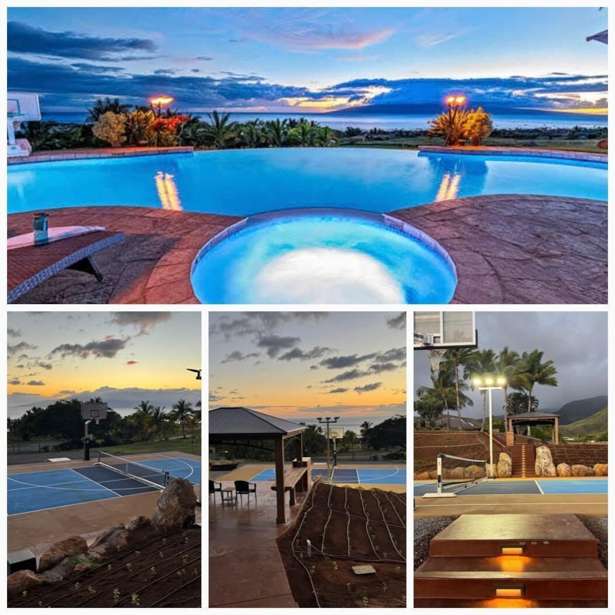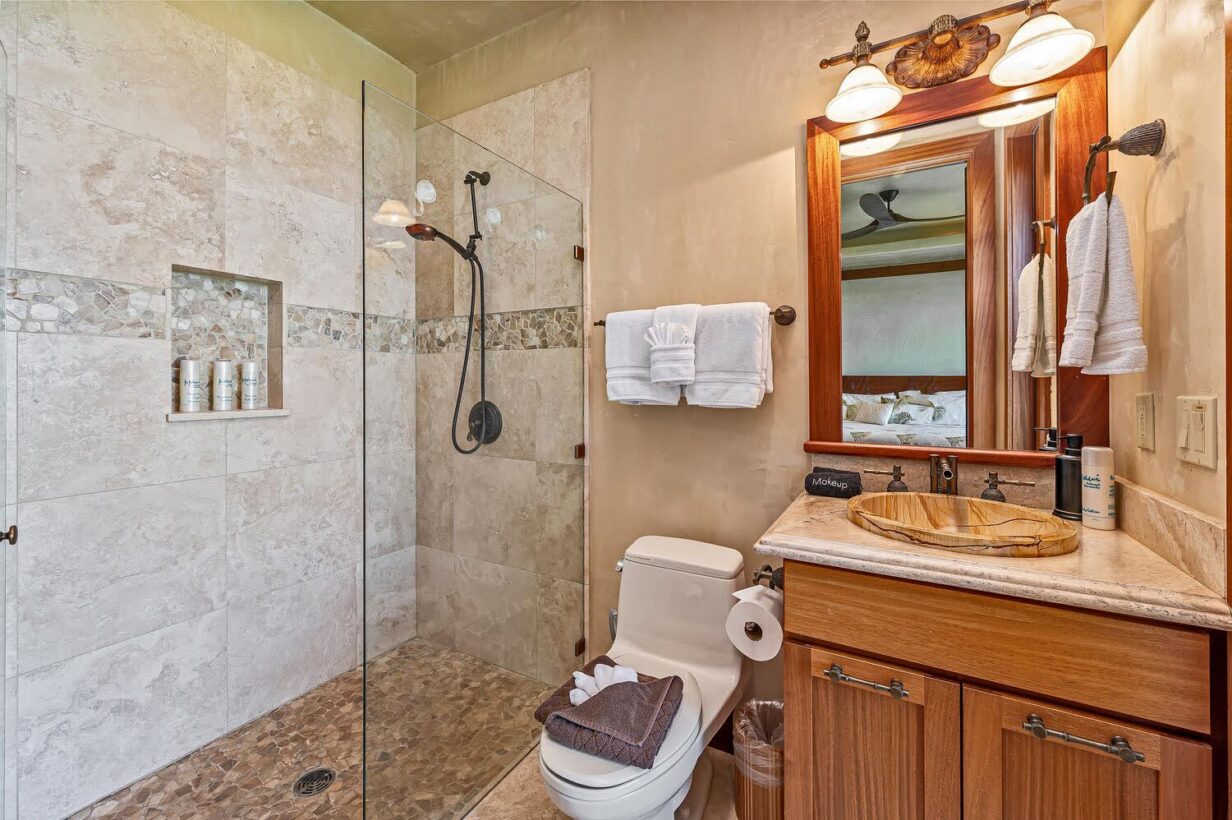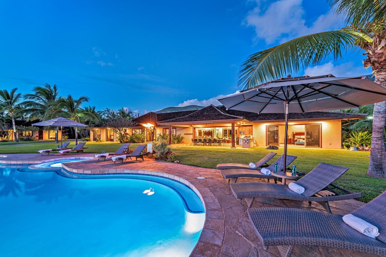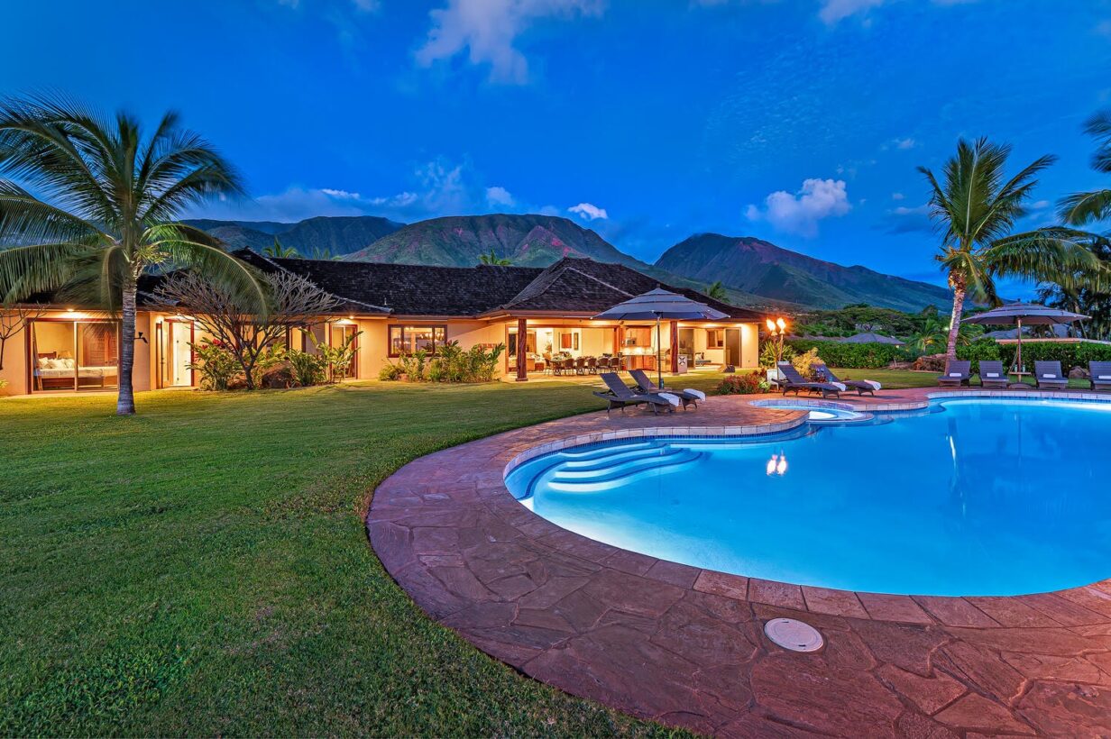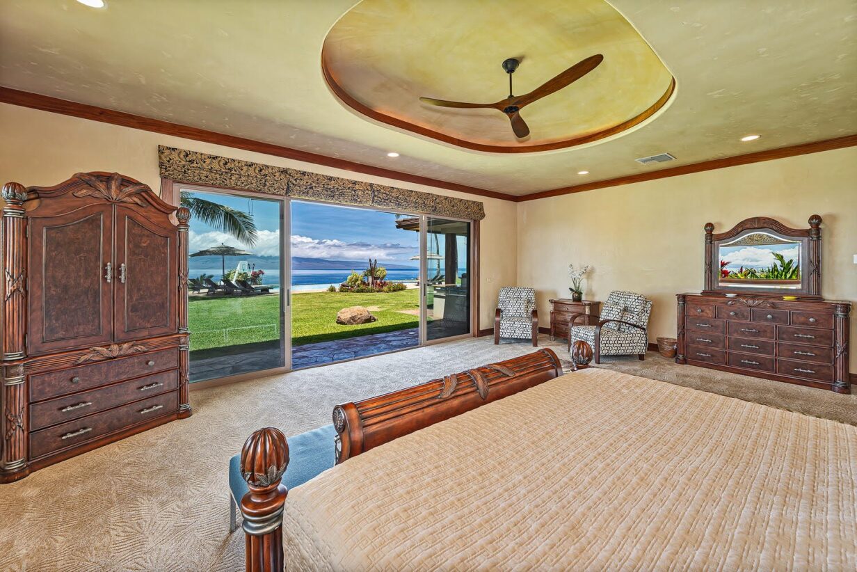This private Maui estate consists of 6 bedrooms and 4.5 baths, with an outdoor shower to rinse off the sand after a relaxing day at the beach. The main house has 4 bedrooms and 3.5 bathrooms, with 2 bedrooms and 1 full bathroom in the separate Ohana (cottage.)