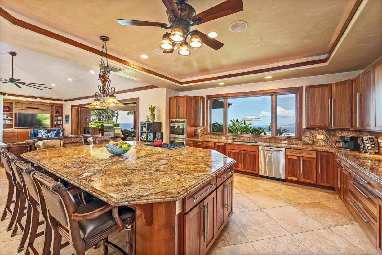 If some of you need to work a bit there’s a private office with a spacious built-in desk, complete with 3 chairs. There are also two sets of large front-loading washers/dryers in the laundry room, along with another set in the Ohana. Everything you’d ever want or need is here at the Panorama, and we proudly invite you to enjoy this estate in one of the top destination locations in the world!