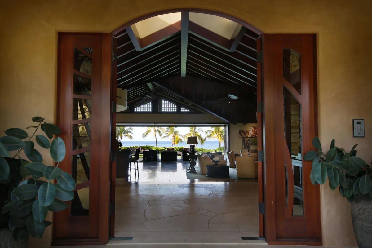 – Door opens to tropical garden area