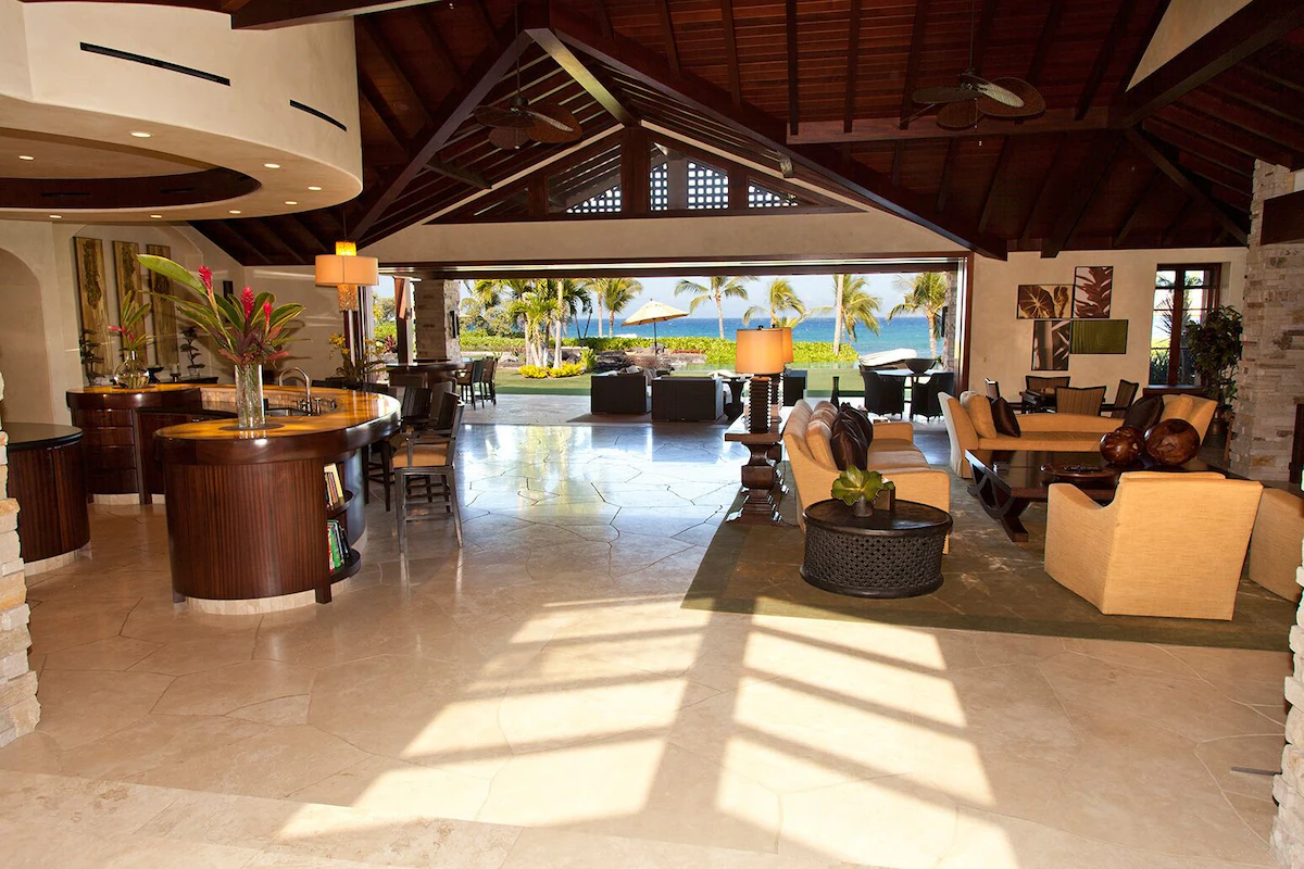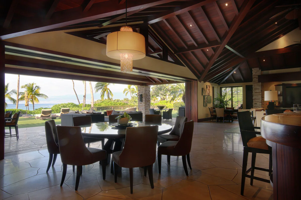 – sliding poker doors open to Grand Lanai