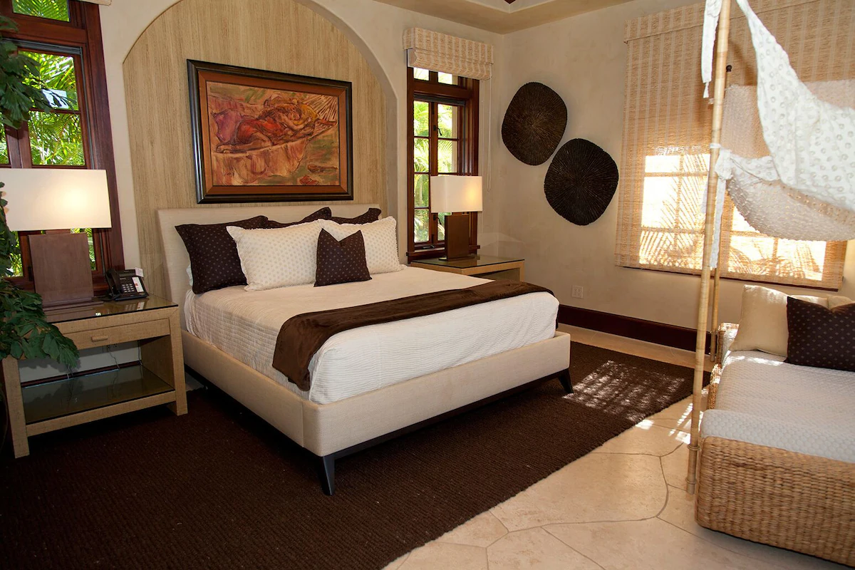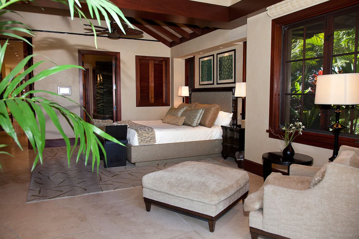 – Lush tropical garden views for three sides of the bedroom