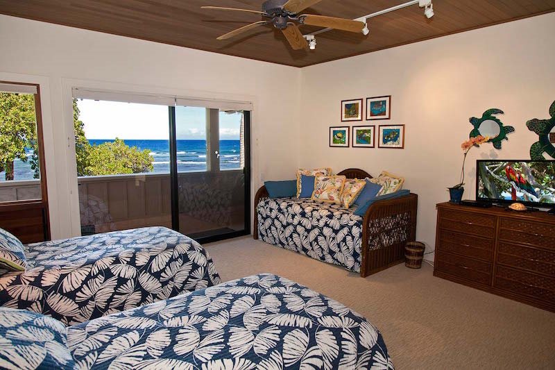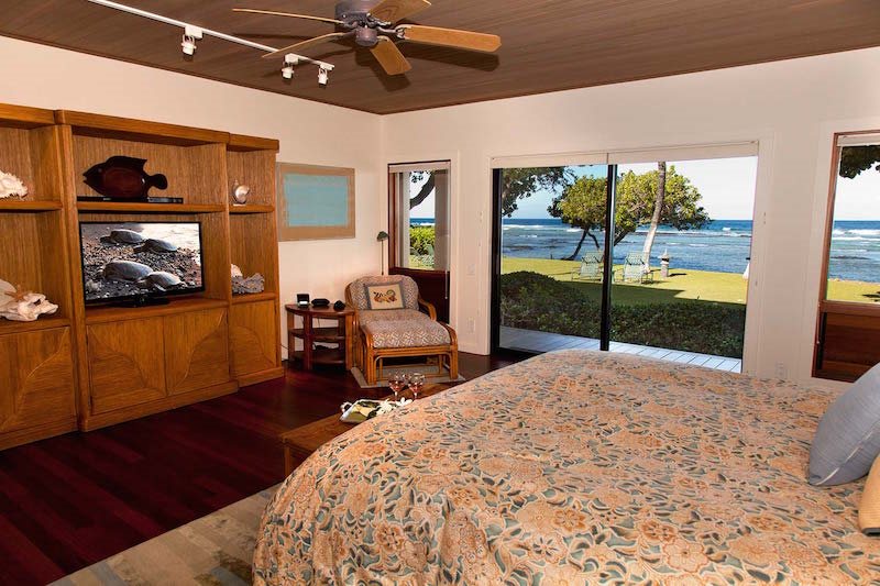 Inside you’ll find the amenities at Princess Tides to rival that of any luxury home or other Puako beachfront rental. Enjoy preparing delectable island dishes in the executive kitchen with its own stunning view of the beach. Throughout the home you’ll also find six televisions with premium cable channels, high-speed wireless Internet, a double office with two printers, and even an area to relax in the office.
