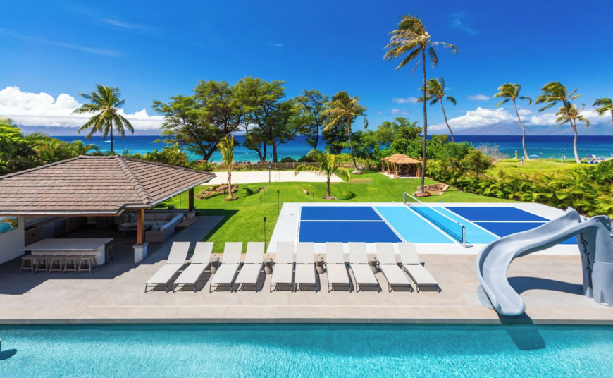 We invite you to unwind at Realizing Maui, an oceanfront property located in Napili on the stunningly beautiful West shore of Maui. You, your family, and friends are sure to be pleased with this 3 bedroom, 3.5 bathroom home, complete with a resistance pool, hot tub, and a sandy cove out front that’s known for sea turtles. Watch them frolic in the ocean and bask in the sunshine, but please keep your distance. *They’re on the Endangered Species list so approaching and/or touching them is strictly prohibited in Hawai’i.