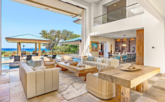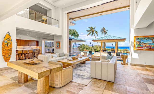 Take in the spectacular views of Lana’i and Moloka’i while relaxing on the comfy outdoor lounge chairs. On the covered lanai, you’ll find a great propane grill to prepare your Island meals, and a large table to dine alfresco with the fruits of your labor. Indoors there’s a spacious and fully equipped kitchen with another dining table, all with ocean views. Each bedroom is well-appointed with en-suite bathrooms, air conditioning, plush King beds, televisions, and luxurious linens. The spacious Master suite encompasses the entire upstairs area, with a sunken soaking tub, separate shower, and large ocean view lanai.