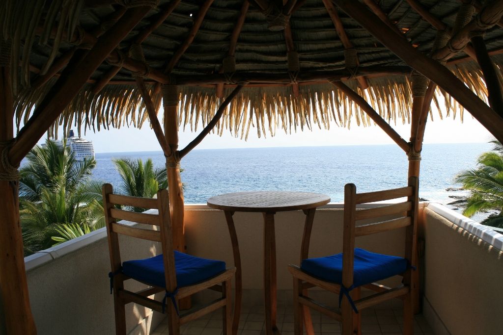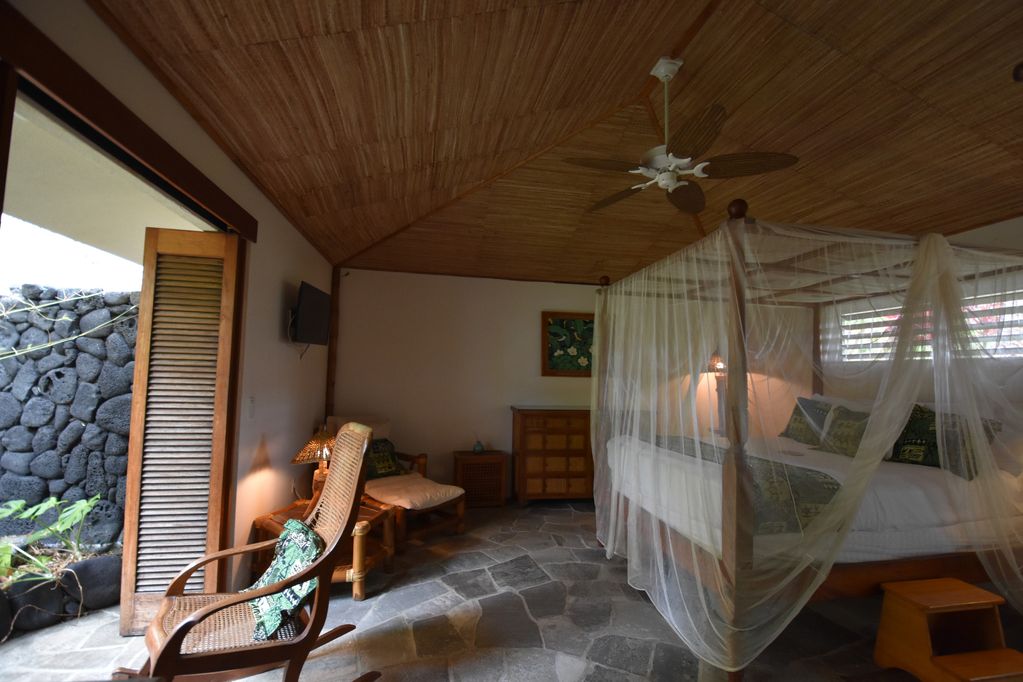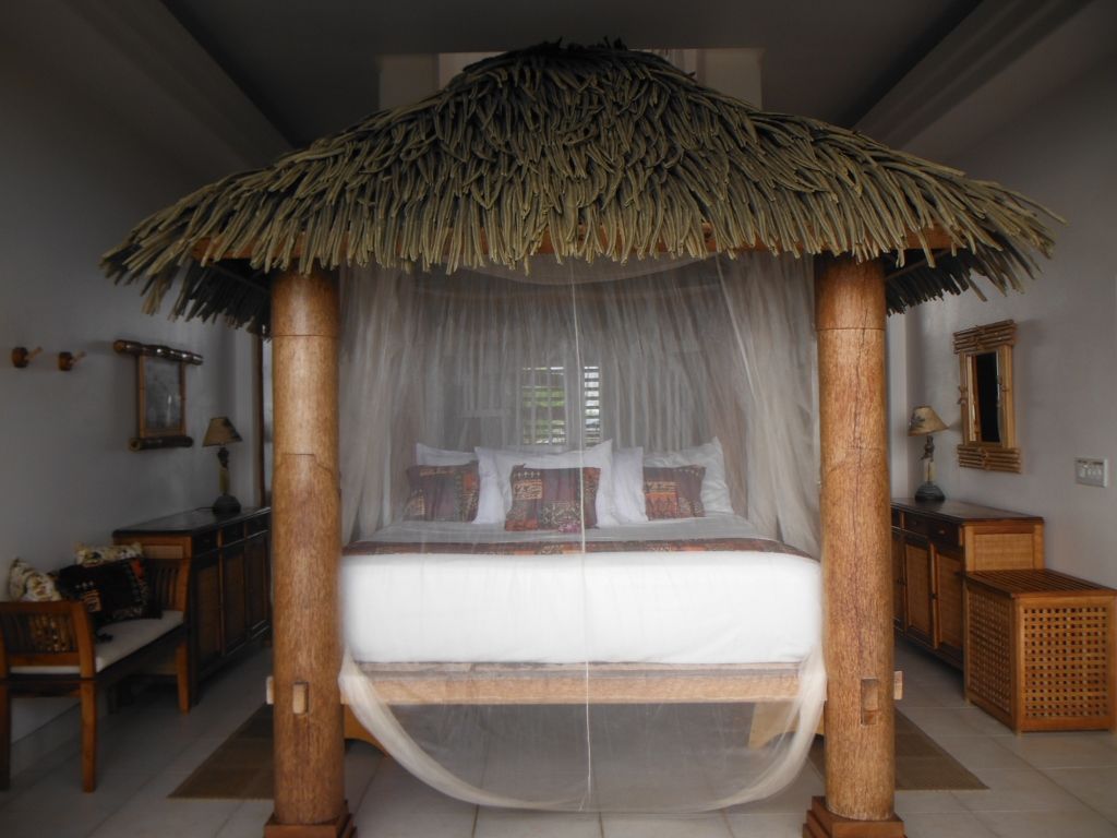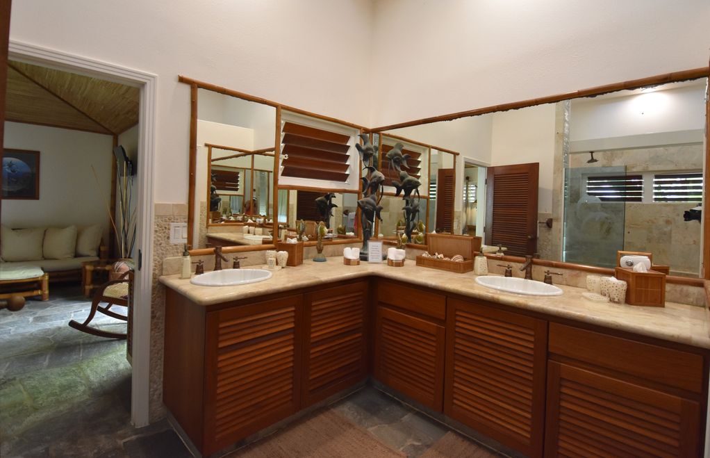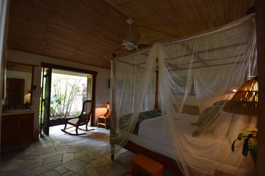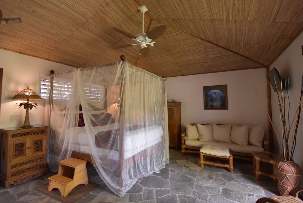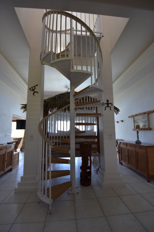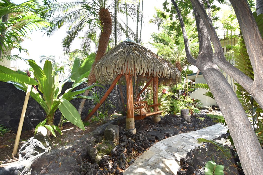 The thatched ceilings, open walls, louvered teak windows, ten foot teak doors, endless lanais, and tropical landscaping, all help to capture the spirit of the islands. A stairway bridge takes you across to the island pedestal where you can lavish in a dinner surrounded by water with simultaneous views of the sunset, waterfalls and the crash of the waves! Enchanting, magical and romantic–there is so much more to describe—but you must see it for yourself!