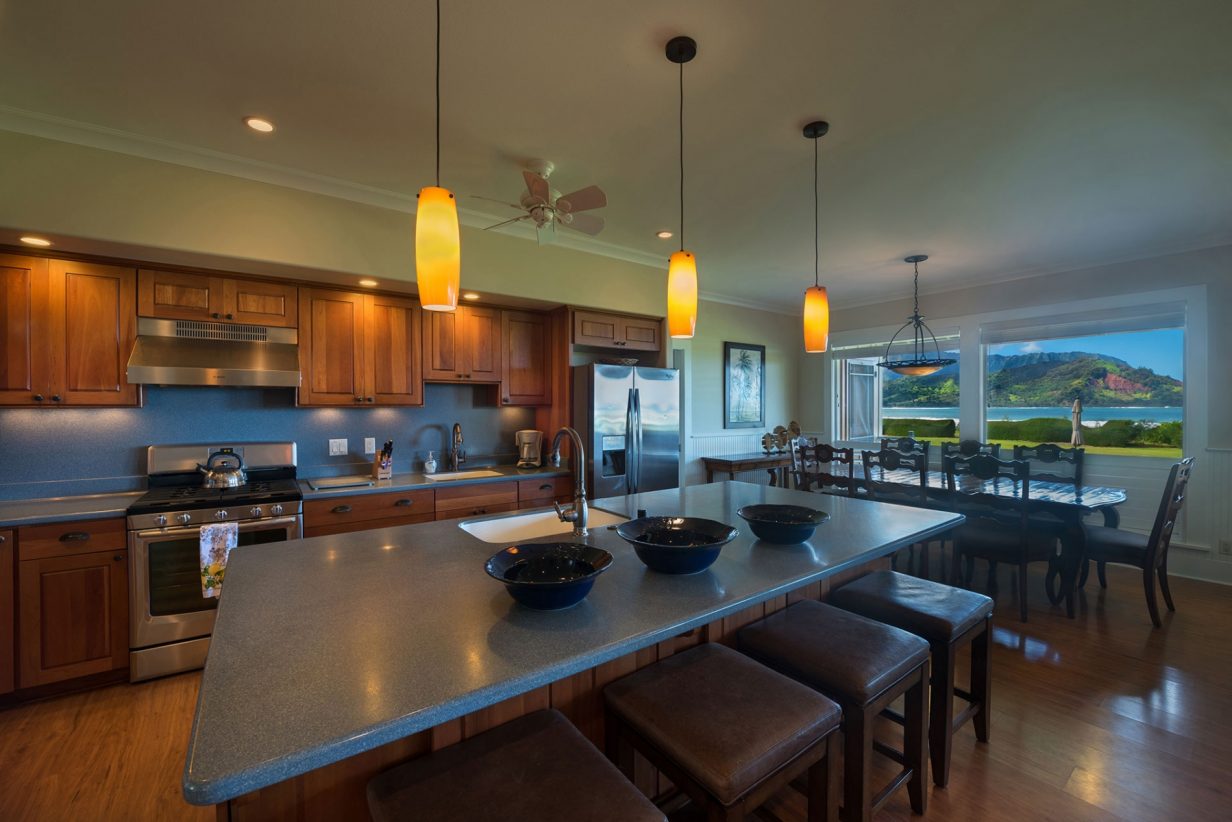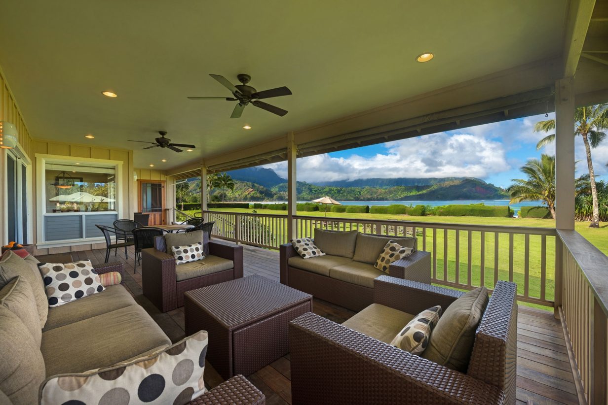 This beautiful home is the perfect beachfront oasis on Hanalei Bay. It features 4 bedrooms, 4 bathrooms and ample living space both inside and out. With breathtaking views of both the ocean as well as the mountains and waterfalls, you will savor every minute at this Hanalei beachfront villa for rent.