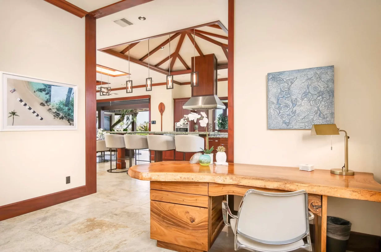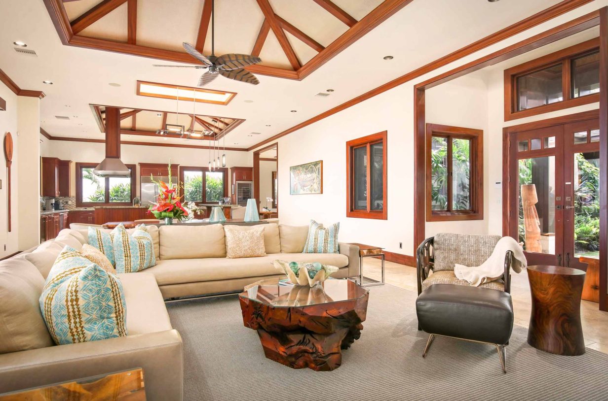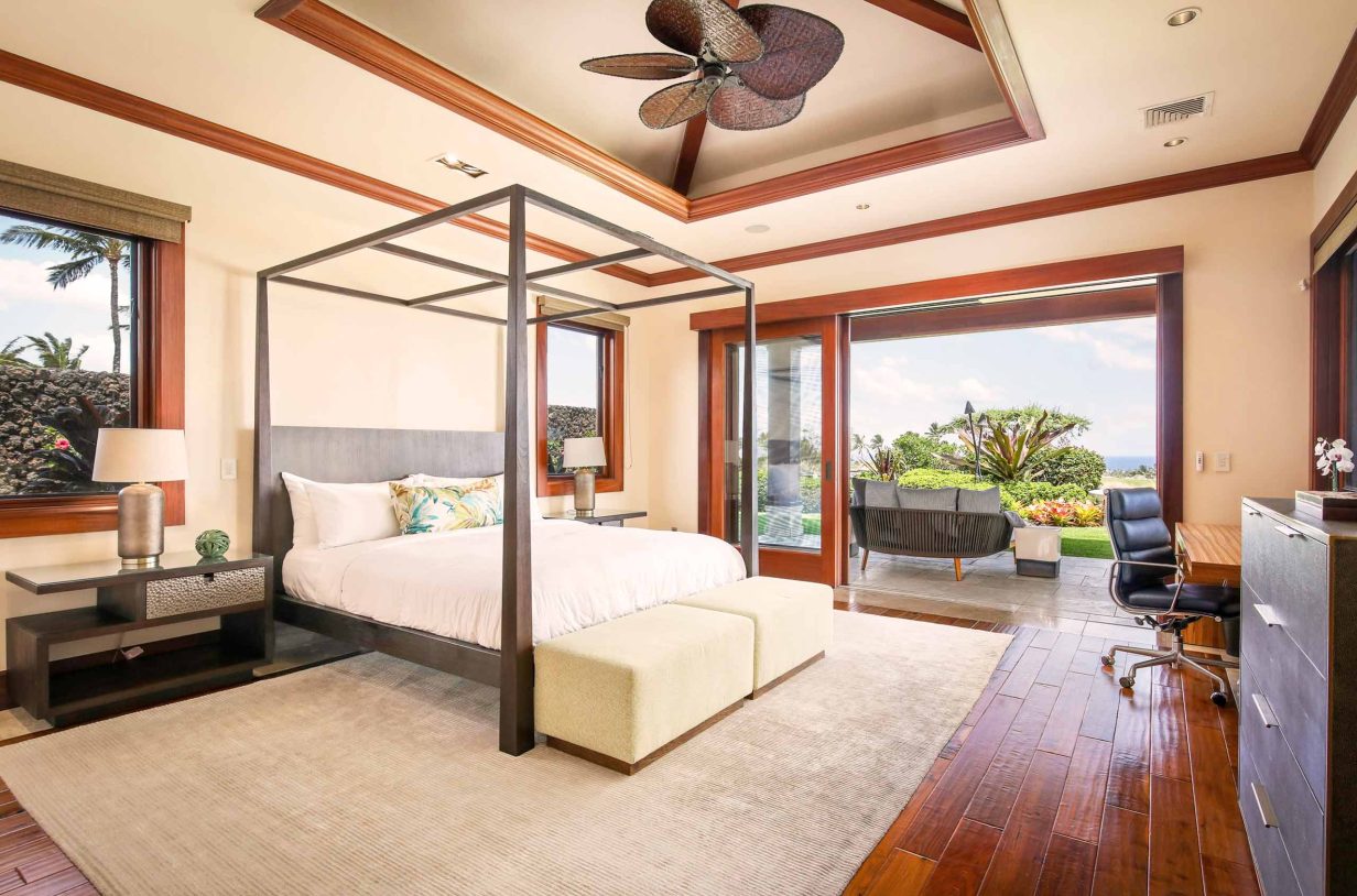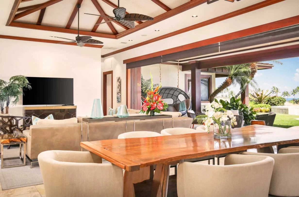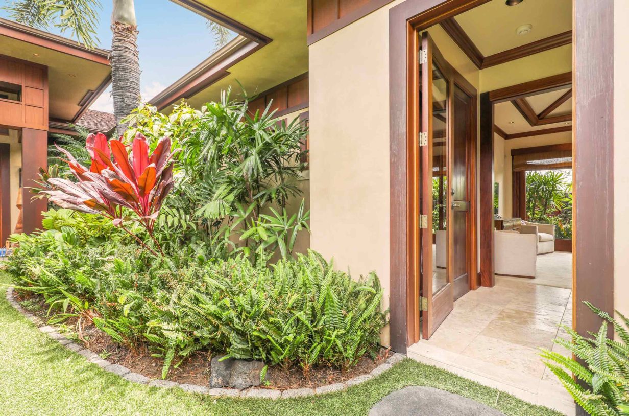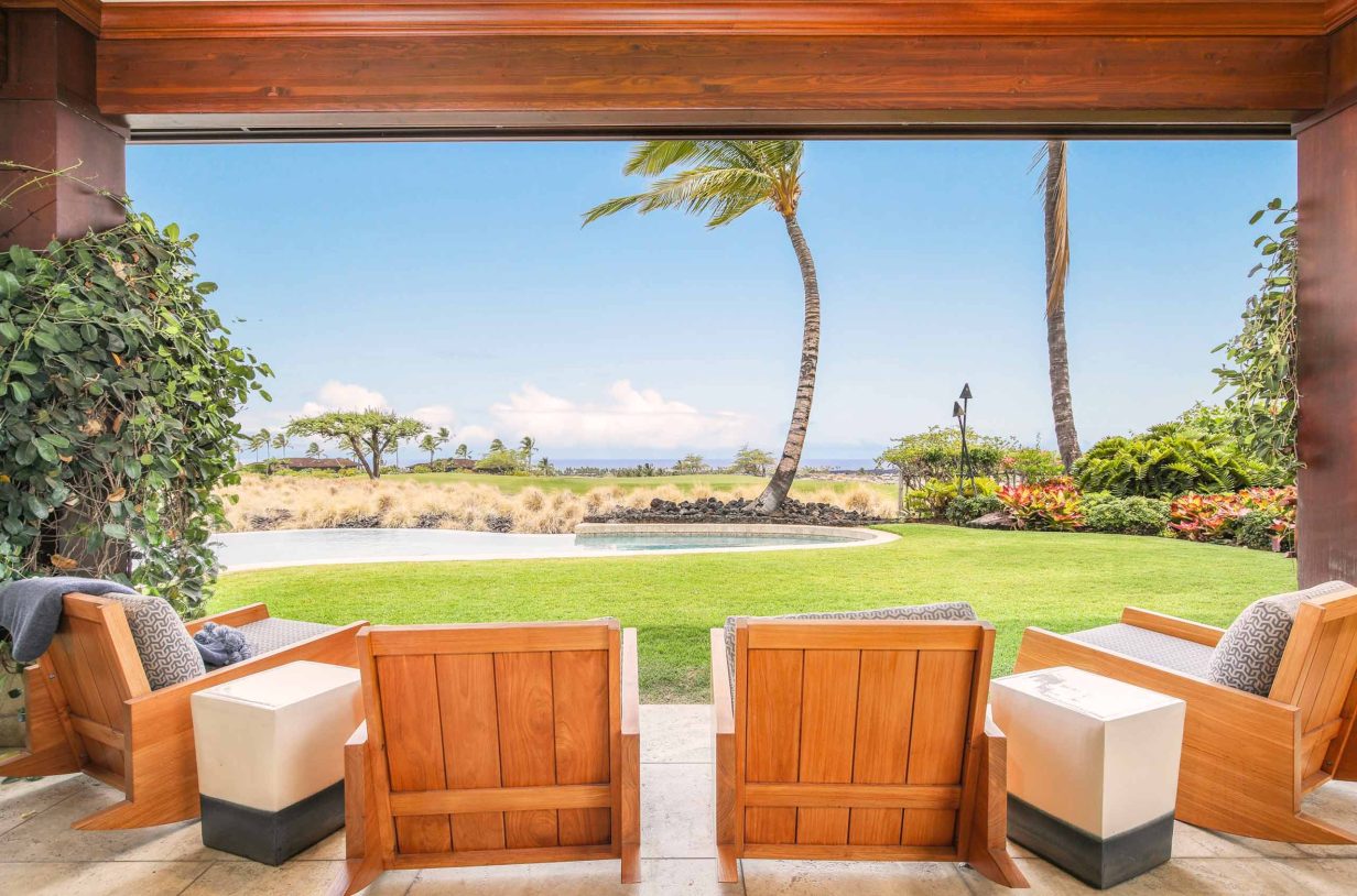 The Hawaiian estate offers a stunning ocean view, visible immediately through the double glass entry doors, and enjoyed from the great room, kitchen, lanai, pool deck, and master suite. The location is unparallel with the Hualalai Sports Club & Spa, Hotel Pools and Services, Championship Golf Course, Tennis Club, Hale Nalu (Ocean Activity Center), Ka‘upulehu Cultural Center, Kids For All Seasons, Hotel Restaurants, and Hotel Beaches.