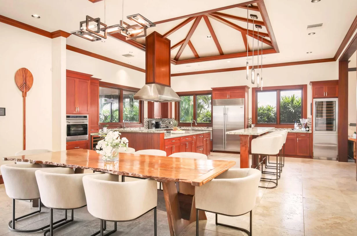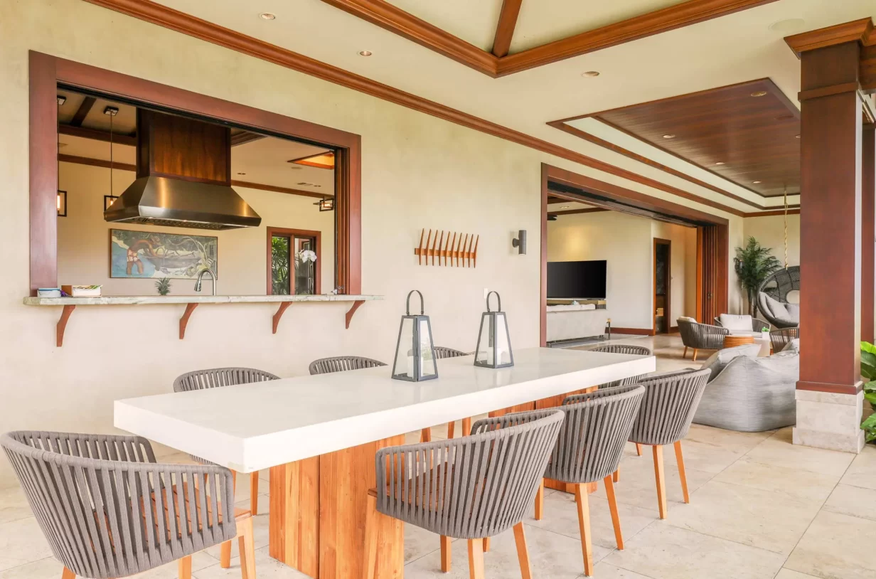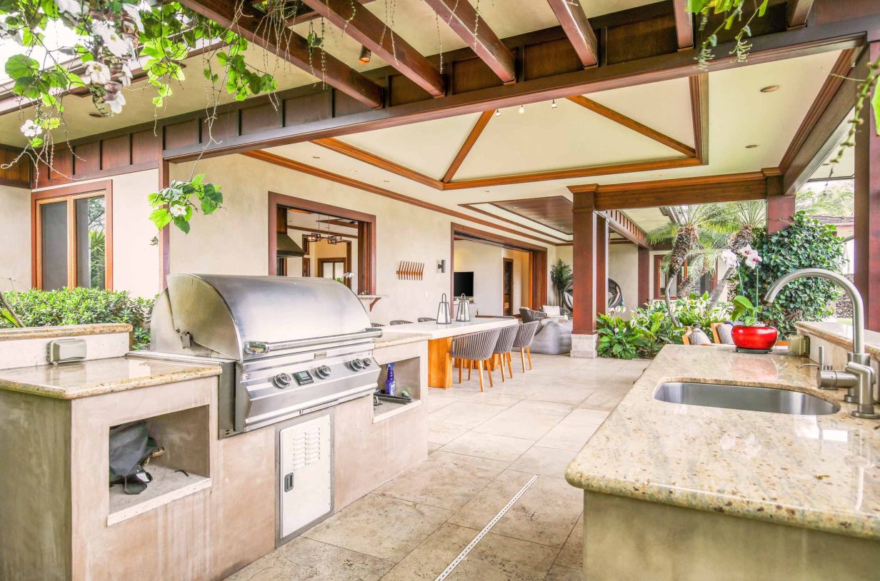 Lounge from your poolside chaise as you take in the ocean views and watch the palm trees dance in the island breezes that seamlessly float through the estate with the open-air design. The expansive, chef-designed, indoor/outdoor kitchen and BBQ will help translate the iconic fish, protein, and produce of the island into four-course meals.