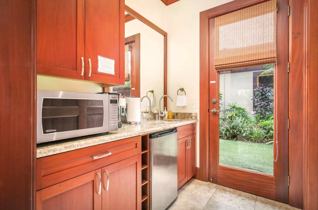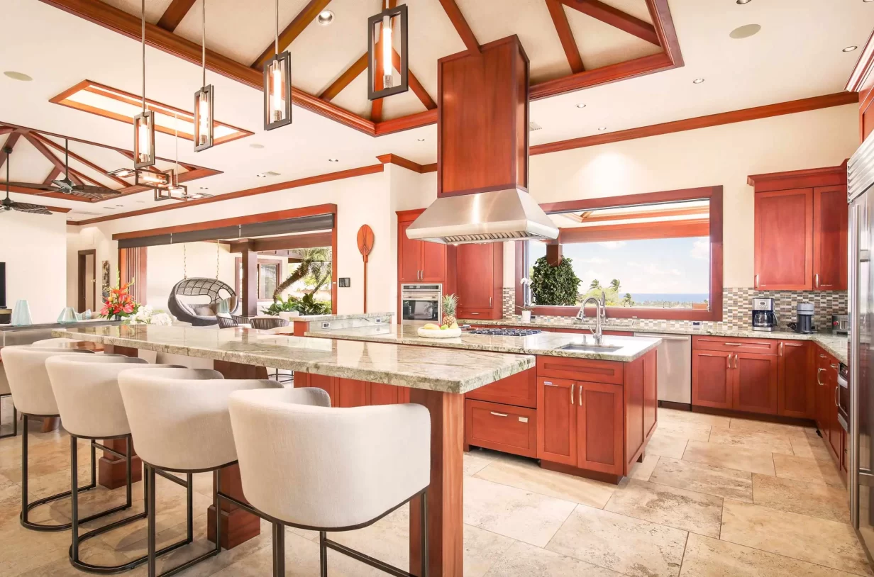 Picturesque, bedroom island suites with outdoor garden showers, premiere resort location, impressive indoor and outdoor chef’s kitchen, and a sprawling lanai.