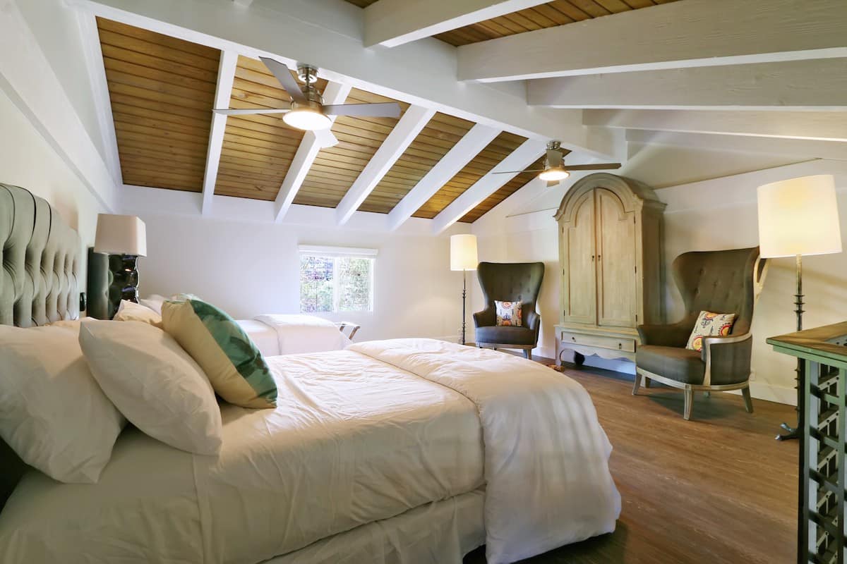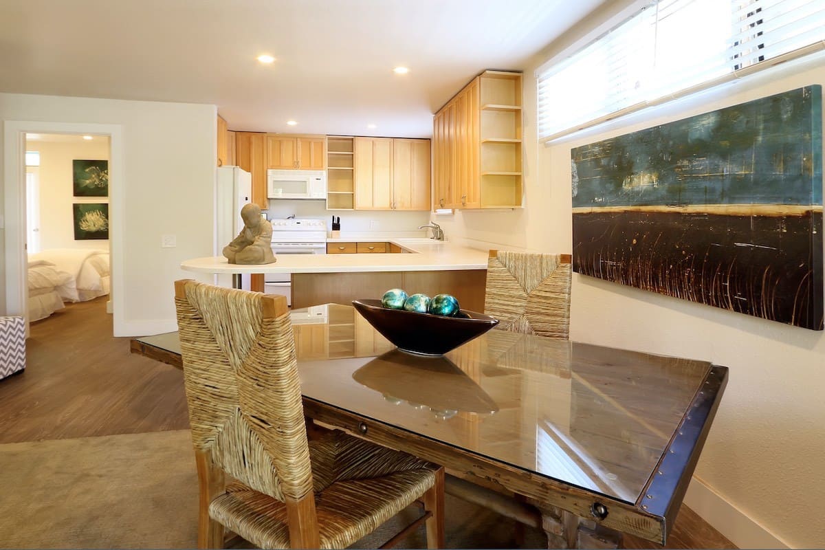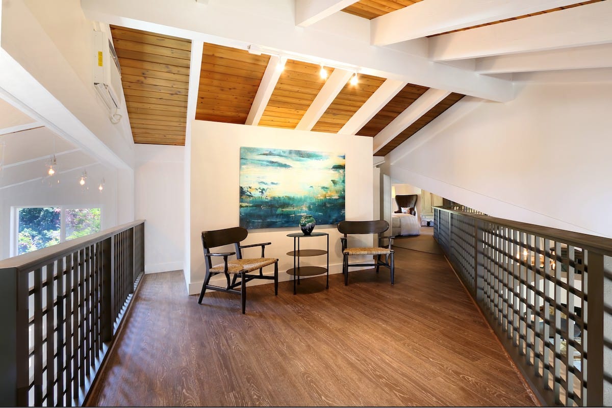 The Sunlit Chateau is a newly remodeled multi-level 6,352 square-foot gated estate. When renting the entire Villa, guests have exclusive access to four condominium suites that can accommodate a total of 20-30+ guests. Ideal for large groups such as retreats and weddings for guests registered and staying on the property. Guests have exclusive use of the property’s heated swimming pool, Jacuzzi, yoga studio, and common areas.