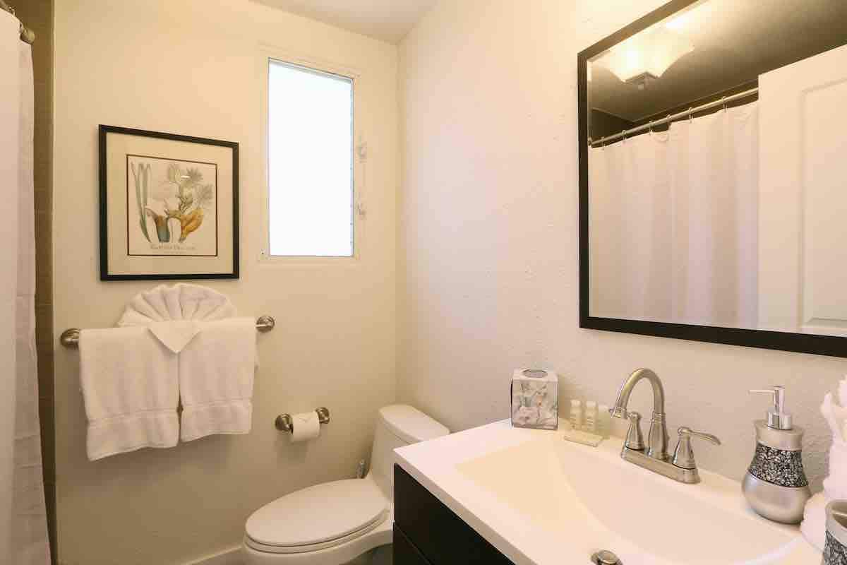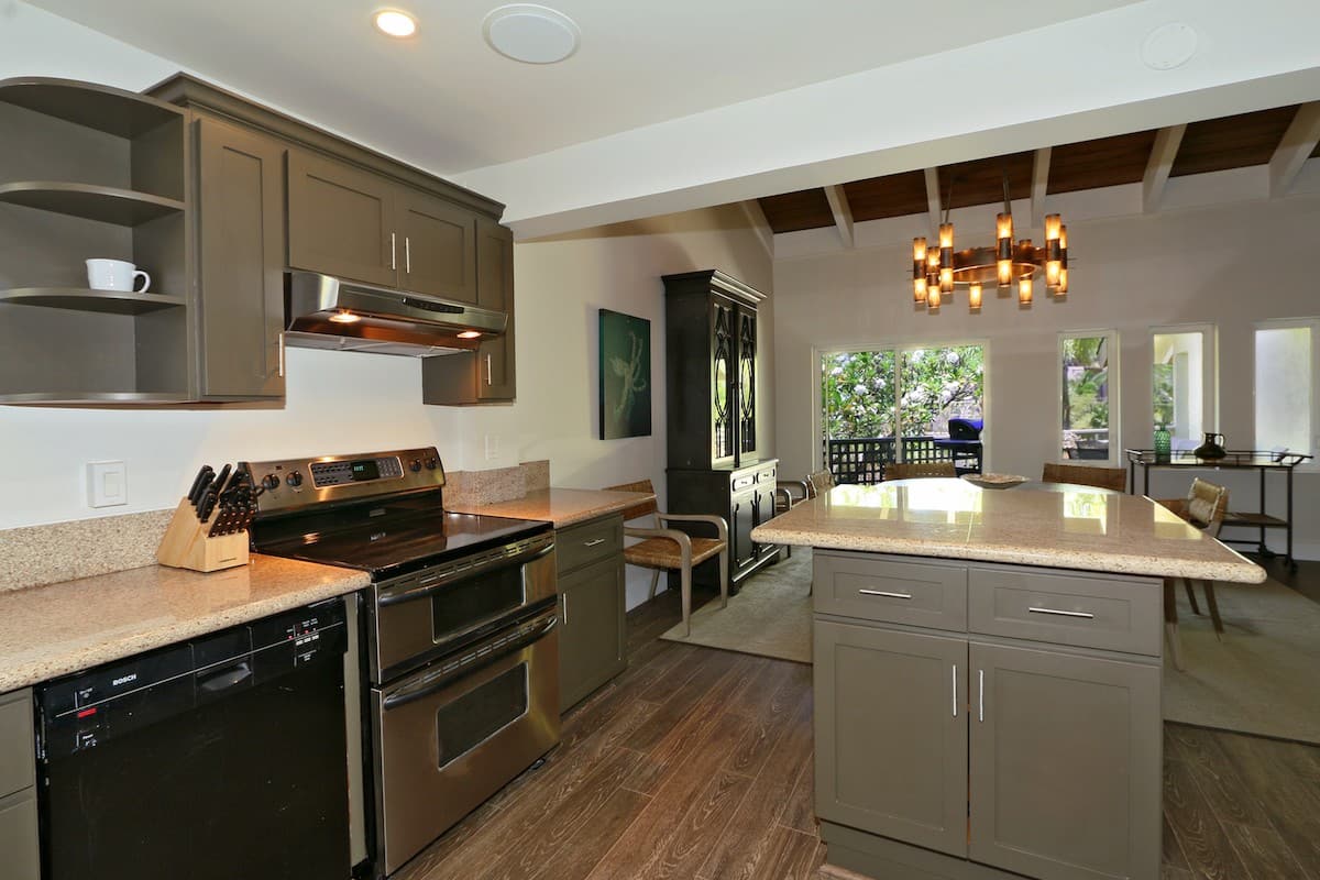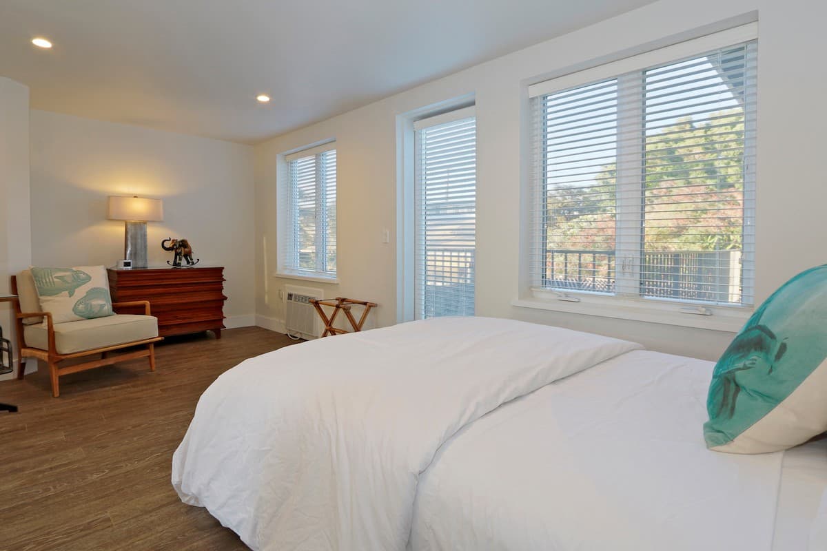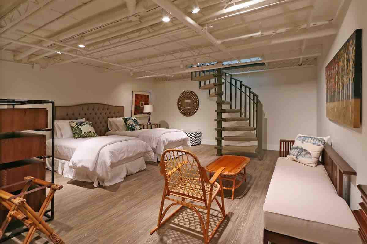 The Sunlit Chateau is a newly remodeled multi-level 6,352 square-foot gated estate. When renting the entire Villa, guests have exclusive access to four condominium suites that can accommodate a total of 20-30+ guests. Ideal for large groups such as retreats and weddings for guests registered and staying on the property. Guests have exclusive use of the property’s heated swimming pool, Jacuzzi, yoga studio, and common areas.