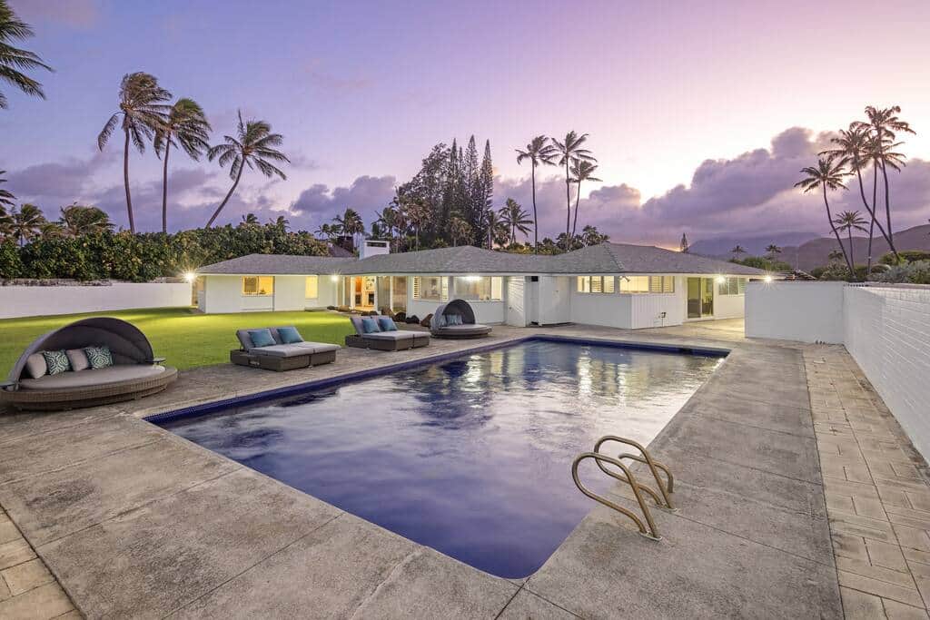 Escape the busy beaches & high rises to enjoy a quiet, peaceful stay at your own private oasis on the Kailua beachfront. This expansive seven-bed estate features ample space both inside and out. Gentle waves of crystal water atop a bed of powder white sand runs right up to a spacious backyard complete with a saltwater pool and privacy fencing. Appreciate the cool Kailua breeze from an open lanai living area & relax under the stars, this hidden paradise offers something for everyone. Situated on Oahu’s Windward Coast, Kailua boasts of some of the most beautiful beaches in the world. It bodes quiet neighborhood streets, a laid-back lifestyle, and unique local markets, boutiques, and eateries loved by everyone. Although Kailua is tucked away in a beachfront corner of Oahu, you’re still a freeway away from the exciting downtown scene of Honolulu.