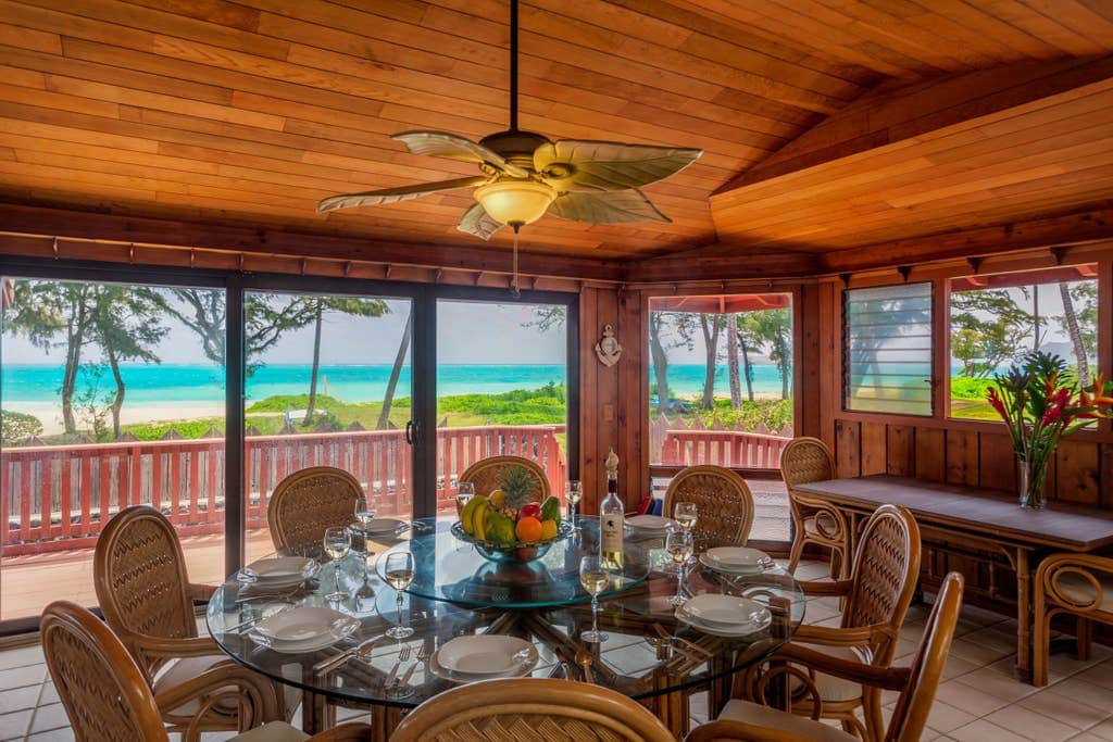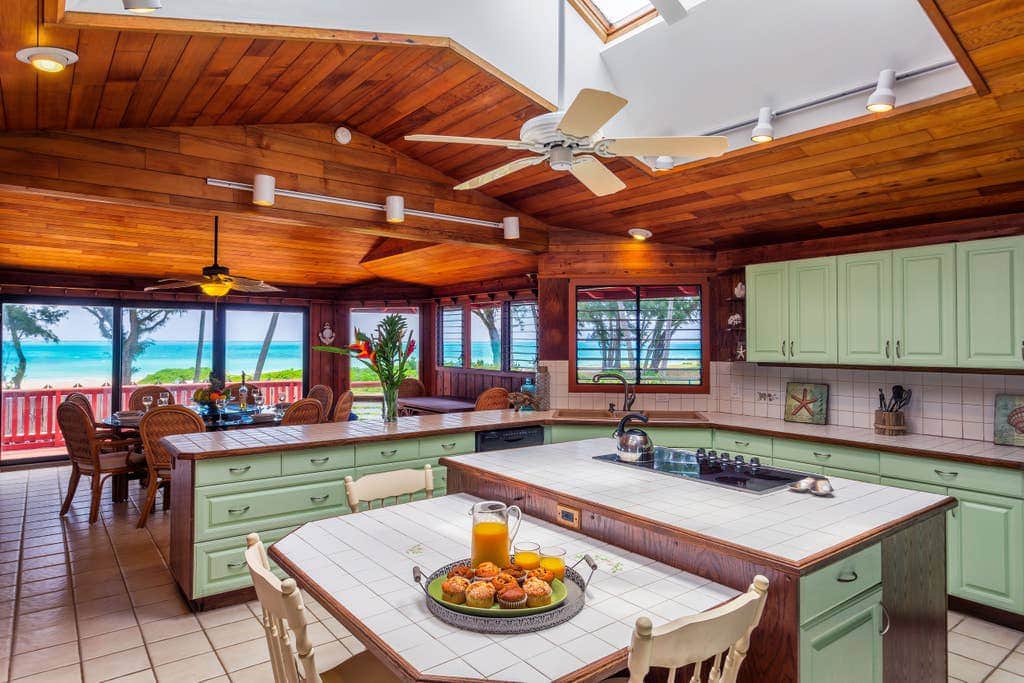 Waimanalo Beachfront is the perfect house for large or multi-generational families to cook, eat and play together. Once you stay at this beachfront gem; you too will know you have discovered a great, hidden secret… beautiful Waimanalo! The sunrises over turquoise water and white sand beach; the sheer, emerald green cliffs of the Ko’olau Mountains; Although, Lanikai and Kailua Beach tend to receive all the attention, quiet Waimanalo Bay shares the same magical windward coast charms but without the crowds. It remains one of Oahu’s unspoiled beauties. Staying in Waimanalo will allow you to enjoy the feeling of being away from it all but still have all the convenience of Waikiki and downtown Honolulu only 30 minutes away. Waimanalo Beach is also famous for the filming of Magnum PI, Baywatch, Lost, Hawaii 50, and other shows.